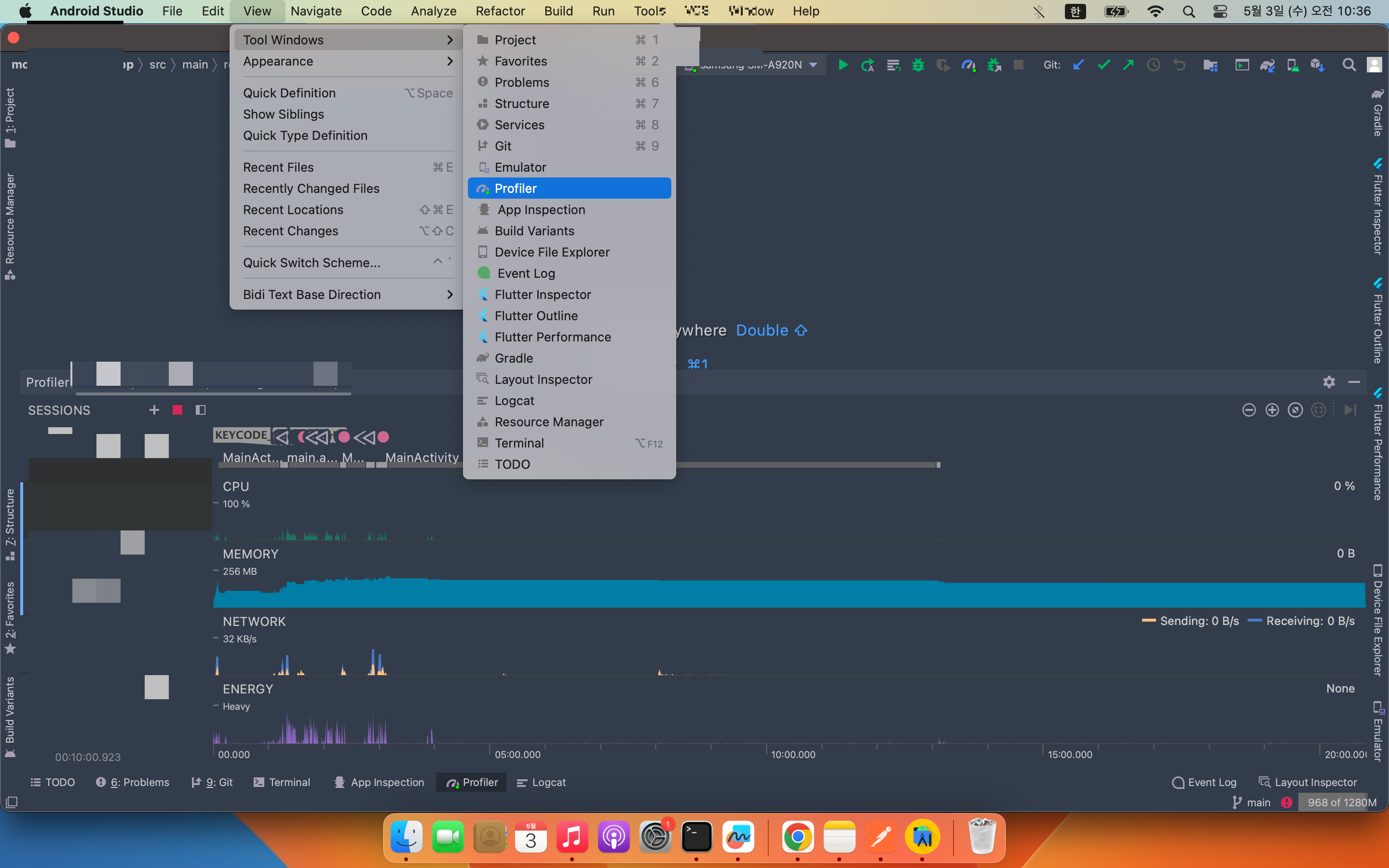 (1)상단바 View> Tool windows > Profiler