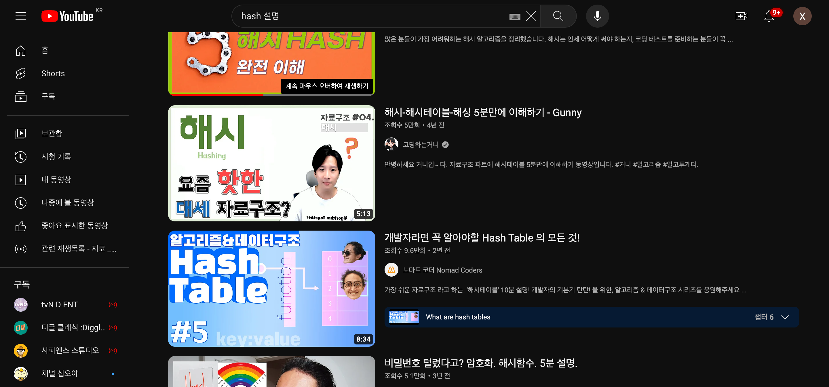 그래서 가장 먼저 유투브에 "Hash 자료 구조 설명", "Hash란" 같은 검색한 다음
