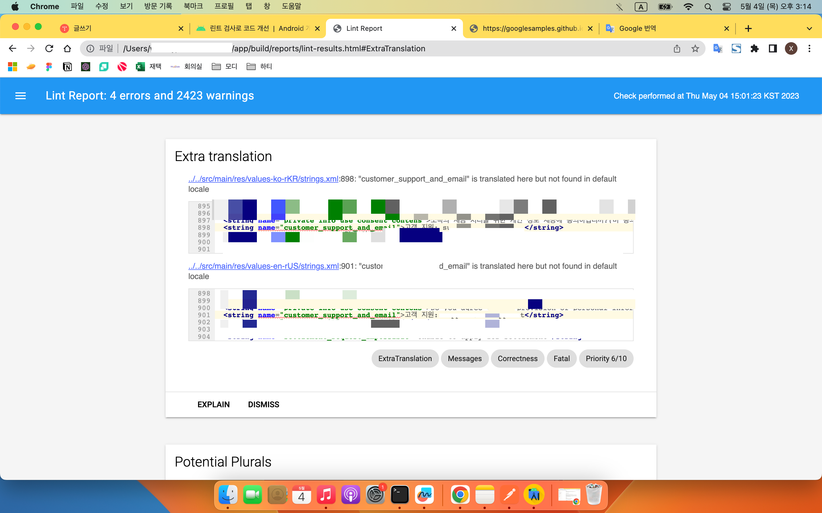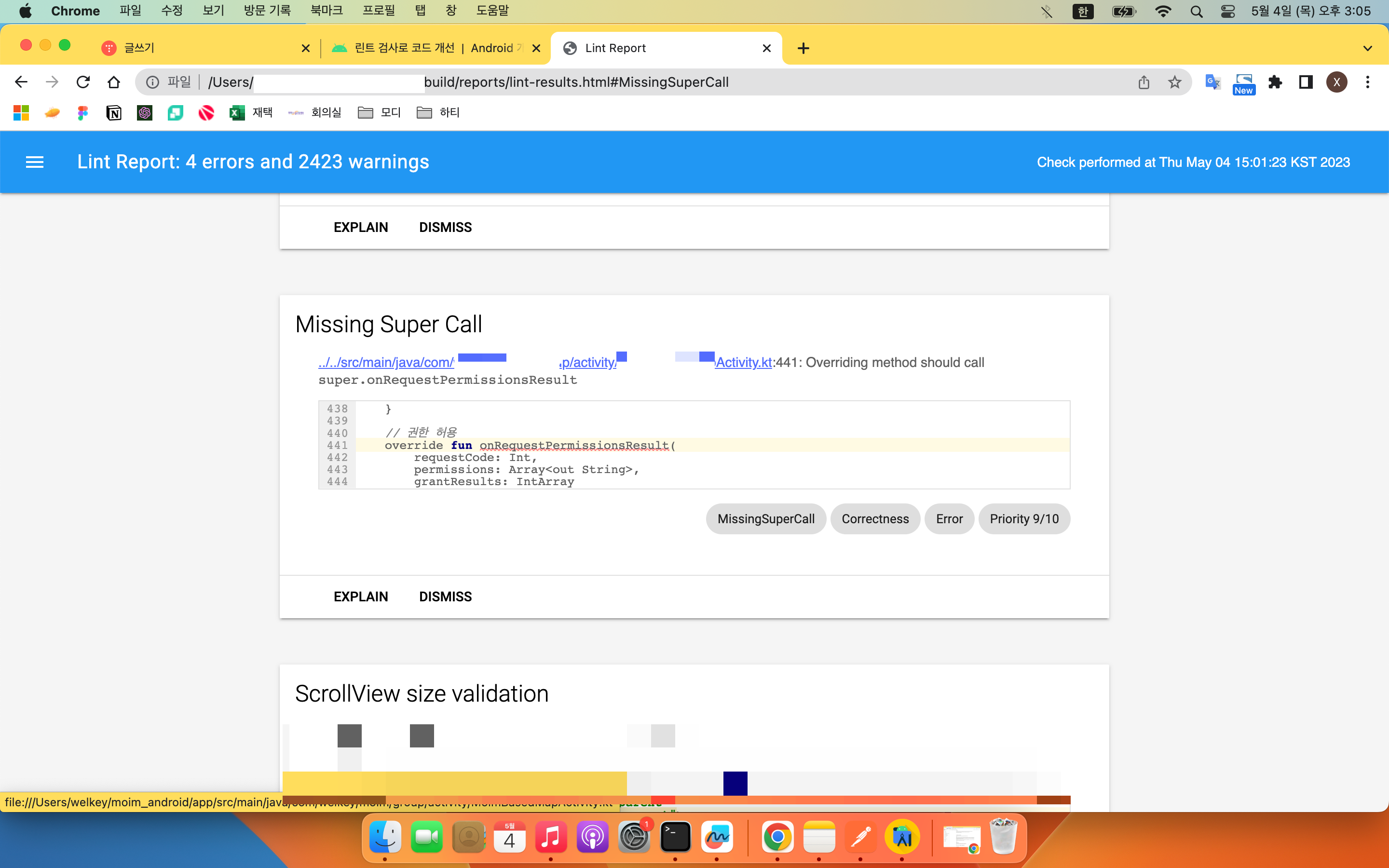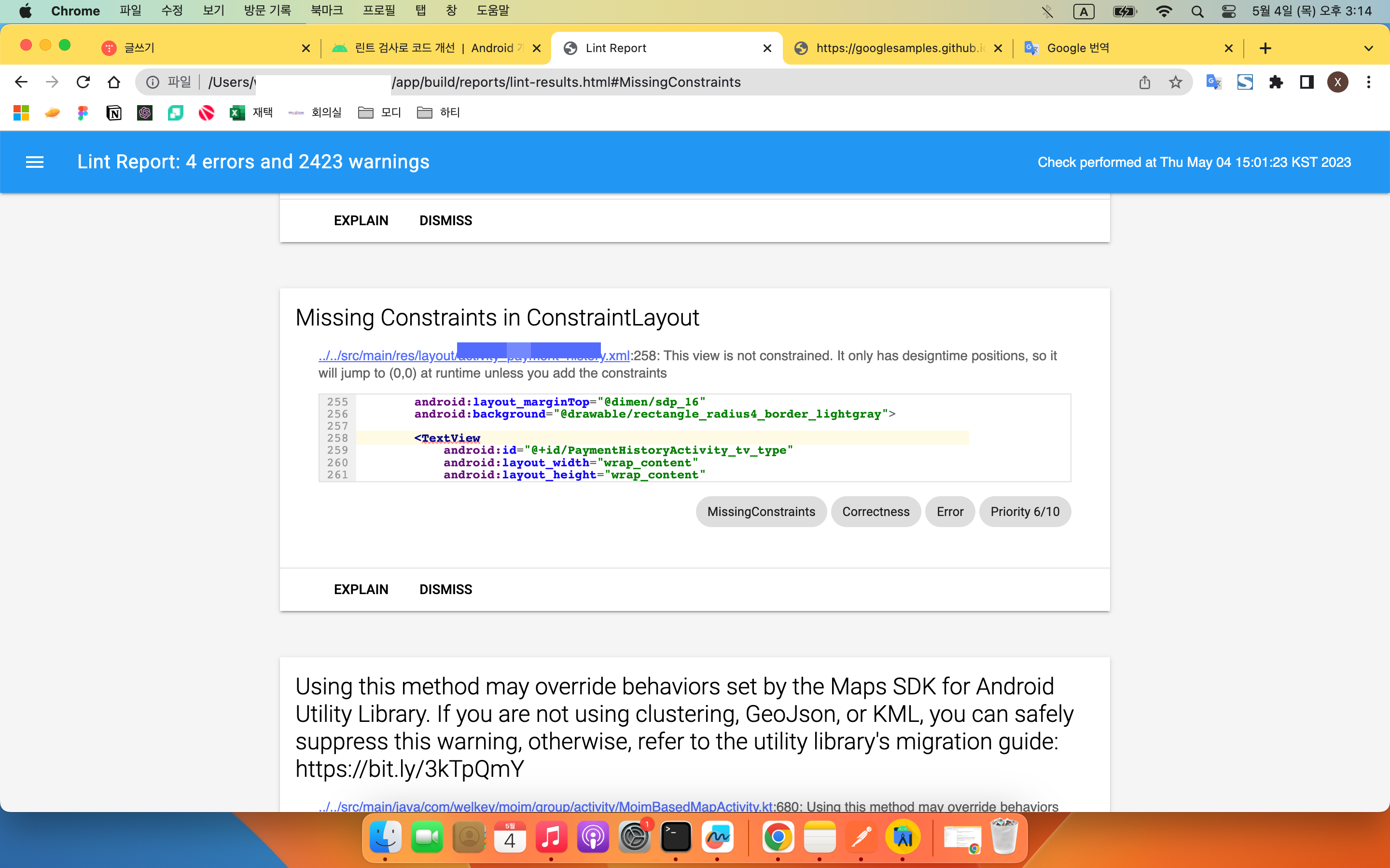 이런 문제가 있는 코드들을 다양하게 관리해준다니 안드로이드 린트 검사는 너무 편하고 좋은 툴이 아닐 수 가 없습니다.