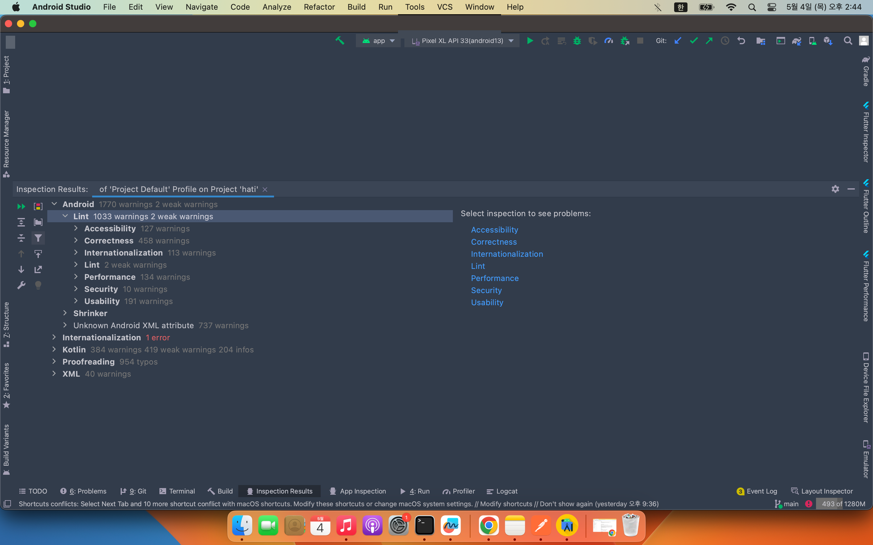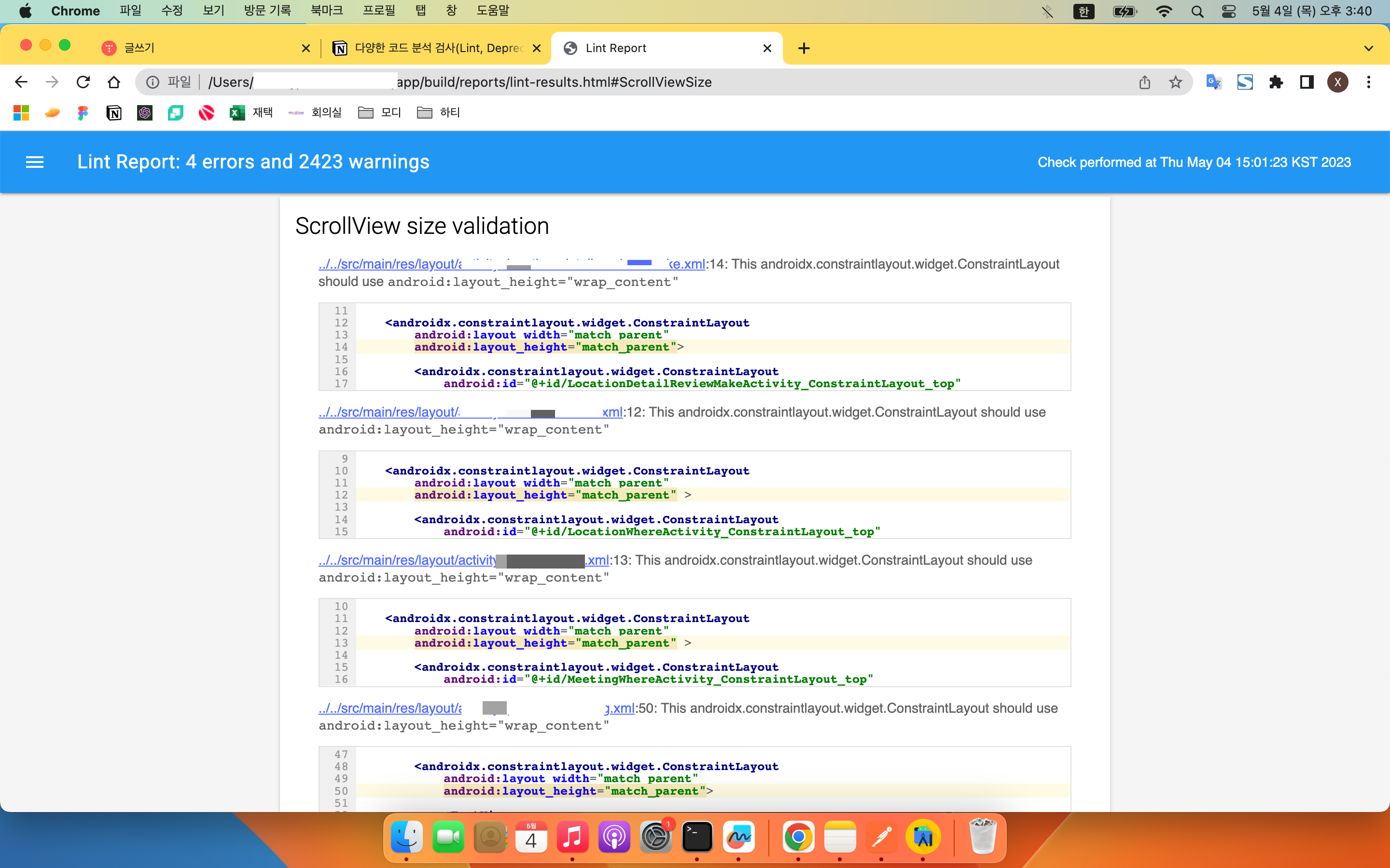 -(Mac or Linux에서) Terminer > ./gradlew lint