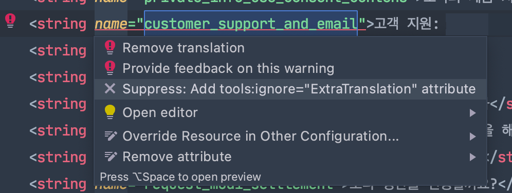 android:accessibilityDescription="@string/webview_description" />이런 문제가 있는 코드들을 다양하게 관리해준다니 안드로이드 린트 검사는 너무 편하고 좋은 툴이 아닐 수 가 없습니다.